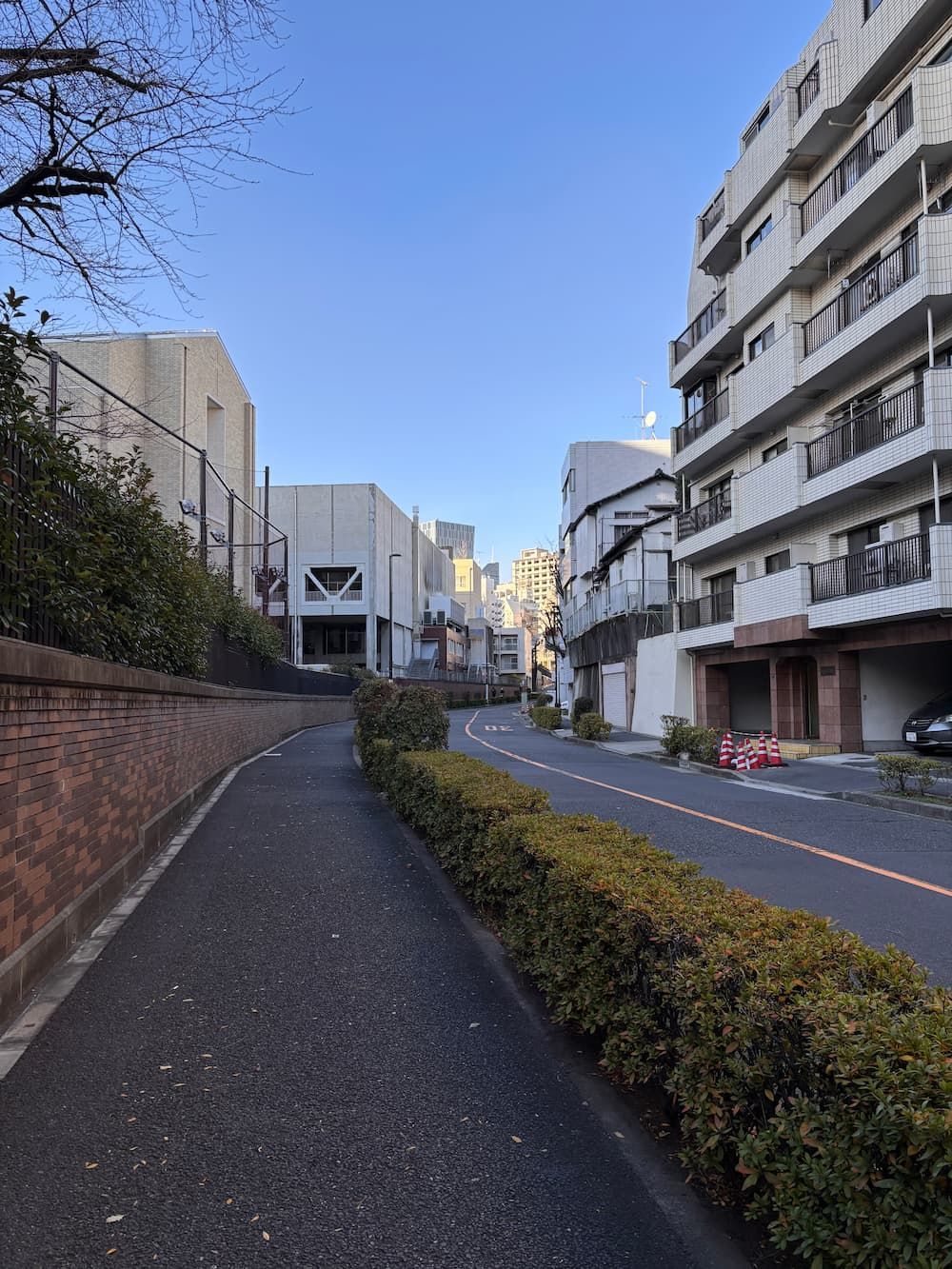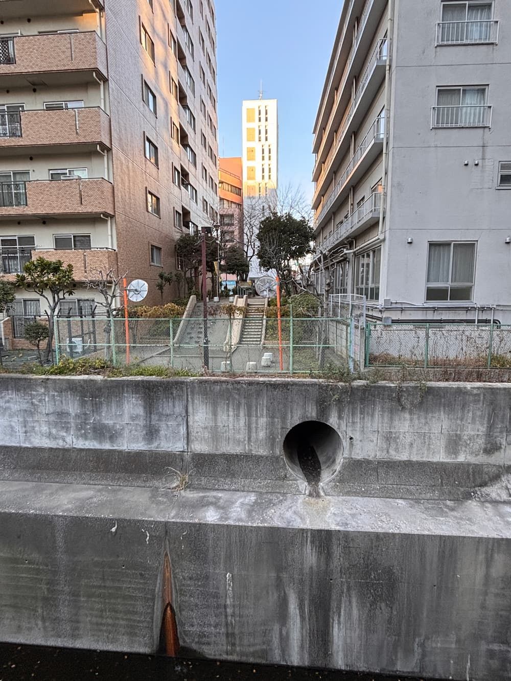 The river flows along the grounds of Aoyama Gakuin University on the left, and it seems that its source once lay within the campus.